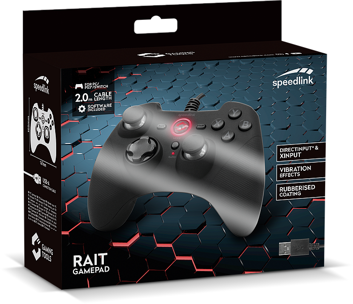 Gamepad RAIT imponuje ogromną wszechstronnością, dzięki czemu jest idealnym wyborem dla graczy z rozbudowanymi kolekcjami gier lub różnymi platformami. Niezależnie od tego, czy sytuacjawymagatechnologii DirectInput, czy XInput, zawsze jesteś poprawnie skonfigurowany za naciśnięciem jednego przycisku i możesz ścigać rekordy na PC, a także na PlayStation3 i Nintendo Switch. Cowięcej,funkcje wibracji i automatycznego uruchamiania gamepada zapewniają więcej akcji, a gumowana powierzchnia zapewnia pewny chwyt nawet w gorących chwilach.